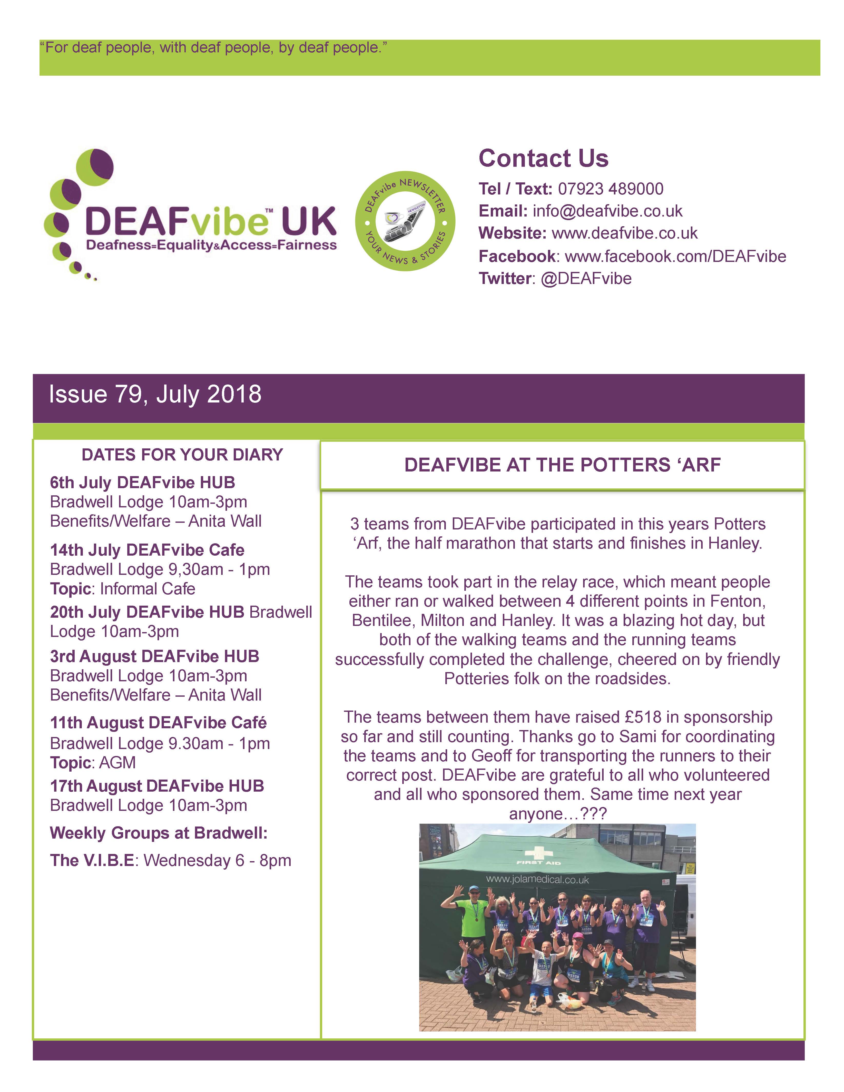 DEAFvibe Newsletter July 2018 Posted by DEAFvibe | DEAFvibe Newsletter Our latest newsletter is now available to be downloaded from our website. Please click on the image to view/download our Newsletter for July 2018. Subscribe To Our NewsletterJoin our mailing list to receive the latest news and updates from DEAFvibe. SUBSCRIBE! You have Successfully Subscribed!